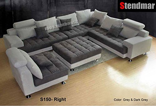 This sectional sofa shall conform to the manufacturer’s specifications and shall be free from defects in design, materials, and workmanship for six (6) months warranty from the date of shipment. The purchaser will be responsible for all shipping costs including costs of insurance for shipping of the products unless the Purchaser and VIG agree in writing to a different arrangement. Risk of loss shall pass to the Purchaser upon delivery by VIG to the carrier. All defective products must be returned in the original packing material. VIG will only allow the return by Purchaser and the replacement of manufacturing defective parts of your sofa. In case of loss, damage, or any manufacturing defect, replacements will be provided for cost or free of charge. This Sectional Couch is designed with ultra modern style by Stendmar. The sectional set is a contemporary classic most popular designed with a sleek, modern aesthetic that makes it the perfect furniture piece for the living room. This beautiful design sofa is well made and designed excellent in quality, It’s worth the money and great comfortable. It’s easy to clean and the best part is it’s huge and really big so, it matches your family comfortably plus friends. Its budget-friendly very popular sectional sofa and price includes Left Sofa, Corner Sofa, Right Sofa, Armless Chair, and Ottoman. It is made in 2-tone color, grey and dark grey with a microfiber finish. The frame construction is solid all-wood with 3.0 high-density foam seat cushions and the leg is Metal or black wood. The back resting pillows and the small pillows x 5 are included. The large back resting pillows are the same finish as the sofa frame structure in a light grey finish and the small accent pillows x 5 are the same finish as the seating cushion in dark grey finish. The seating cushion and all pillows have zippers on the bottom covers that can be removed for cleaning if needed. If you are thinking about buying it, you will get Beautiful looks, super comfortable, and even better than you expected. It is a unique style with a modern, stylish, comfortable, luxurious, and durable sectional sofa. You will love it and fits perfectly in any living room. The overall dimension of this sectional couch is 142 x 112 x 35 inches and a total weight of 500 pounds. The assembled Seat Height is 16.5 inches. This sectional sets includes, 1 x 70” Left sofa, 1 x 70” Right sofa, 1 x 72” Corner sofa, 1 x 40” Armless chair, 1 x 40×40” Ottoman, 3 x head rests, 5 x Accent pillows.